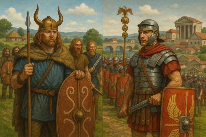 Tribal warfare relied on chariots and local fortifications. Roman armies used disciplined formations, heavy infantry, siege weapons, and sophisticated military strategy, giving them a decisive advantage.